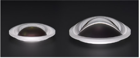 XGM镜片(上图右)与一般玻璃铸造非球面镜片(上图左)相比,非球面更大 |