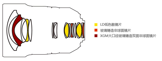 这款镜头由13组18片镜片构成,其中突破性的在前组镜片中首次采用了XGM大口径双面玻璃铸造非球面镜片,并在适当位置配置了数枚LD低色散镜片,大幅抑制广角焦段容易出现的桶形畸变和放大色差,从而使这款焦段从15mm开始的F/2.8超广角变焦镜头具有优异光学性能。 |
