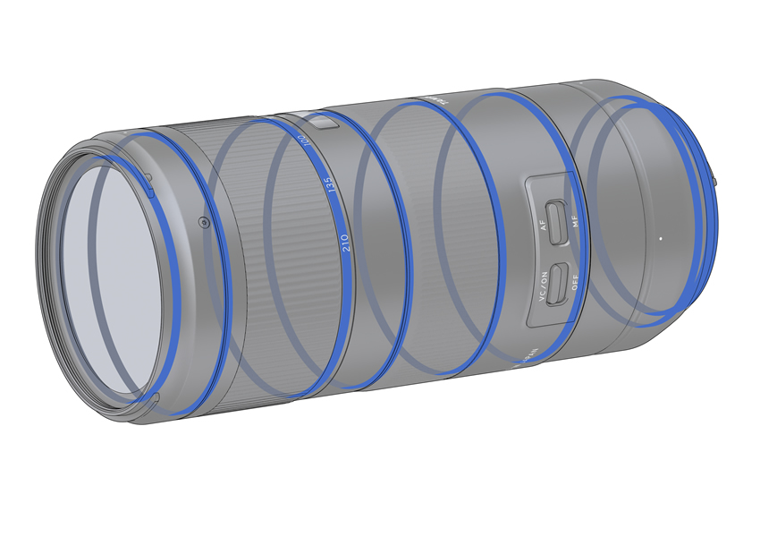 镜筒的各个机械可动部、结合部装有防滴溅密封圈,为户外拍摄提供更多保护。