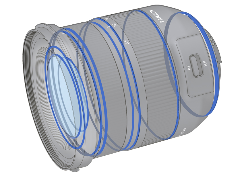 17-35mm F/2.8-4 Di OSD(型号A037)是追求小型轻量与高画质并存的超广角变焦镜头。采用了4片LD低色散镜片,有效抑制放大色差。外加2片GM玻璃铸造非球面镜片的配置,矫正畸变等各种像差。不仅实现了媲美更高级别产品的锐度和对比度,同时在周边点状影像的还原度上也十分优秀。另外,针对强光源较易进入画面内的广角镜头,经过多次独特的分析模拟实验,在提高光学设计完成度的同时,加入防反射效果出色的BBAR宽频抗反射镀膜,大幅抑制眩光和鬼影的发生。全焦段最近对焦距离0.28m,当全开光圈靠近被摄物时,超广角变焦镜头也能拍摄出大光圈镜头才有的背景虚化表现。同时,圆形光圈构造能带来漂亮的圆形虚化效果。