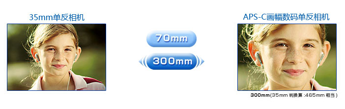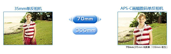 35mm全画幅单反相机与APS-C画幅数码单拍摄时的视角差异。