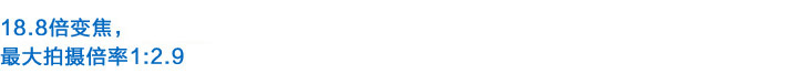 覆盖16mm(相当于35mm全画幅相机24.8mm)到300mm(相当于35mm全画幅相机465mm)的超大变焦范围,在广角端时能将宏伟风景尽收其中,而在长焦端时可捕捉到远距离拍摄对象具有震撼力的特写画面,还具有1:2.9的微距对焦功能。 | |
