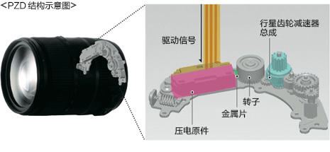 腾龙的新型驻波型超声波马达PZD(Piezo Drive),实现快速、安静的自动对焦,即使是需要保证安静的环境下也能适用。通过增强对比度自动对焦的支持,实时取景模式拍摄时对焦更流畅。同时,搭载了全时手动对焦机构,可随时调整对焦而无需切换对焦模式,对焦更方便。 |