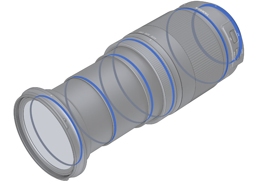 镜头采用腾龙全新开发的HLD马达作为自动对焦驱动力。拥有优异驱动力和稳定性的HLD马达,可更好控制自动对焦系统。得益于马达自身小型化的优势,更是扩大了AF模组的设计空间,提升了与镜筒的契合度,匹配APS-C画幅机身更小型、更轻便。