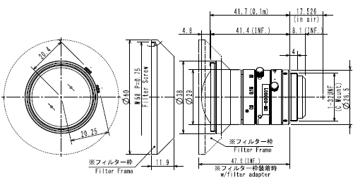 滤镜螺纹口径 | M58 P=0.75mm | ||