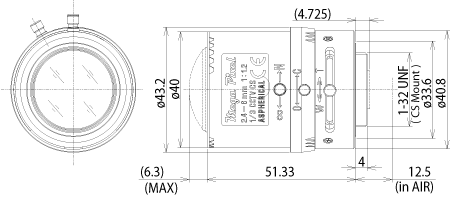 后焦点 (in air) | Wide 7.84~Tele 13.72mm |