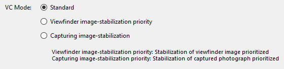 - 标准:产品出厂设置时兼顾取景器影像稳定性和防抖补偿效果的平衡模式。